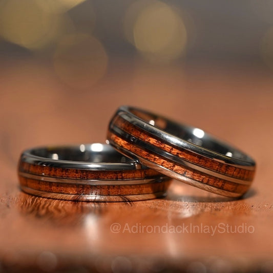 8mm Double Channel Tungsten Band, Koa Wood ring, Wood Inlay ring, Wood Band, Nature Inspired Ring, Wood Mens ring, Wood Womans Ring, Wood Wedding Band
