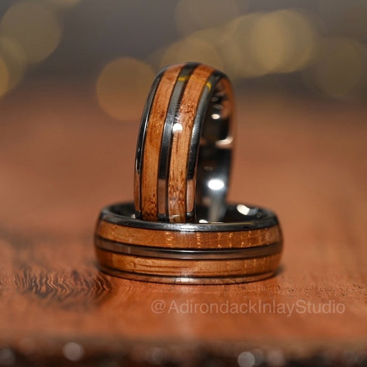 8mm Double Channel Black Tungsten Band, Whisky Wood Band, Whisky Barrel ring, Whisky Ring, Wood Inlay ring, wood band, Mens Ring, Womans Ring, Wood Wedding Band