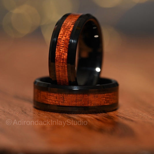 8mm Black Tungsten Band, Koa Wood ring, Wood Inlay ring, wood band, nature inspired ring, Mens wood ring, Womans wood Ring, Alternative Wedding Ring